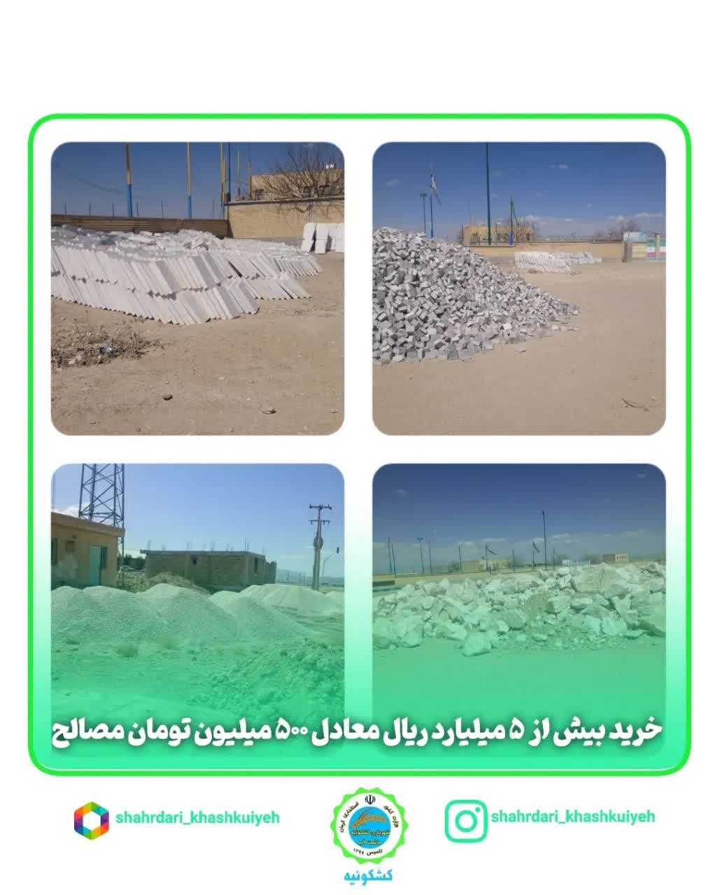 🔻 ۲-خرید بیش از ۵ میلیارد ریال معادل ۵۰۰ میلیون تومان مصالح